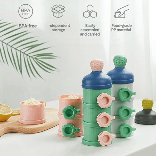 三层独立储存设计,搭配蜂巢造型盖子与旋转扣,牢牢锁住奶粉,避免受潮和漏撒。