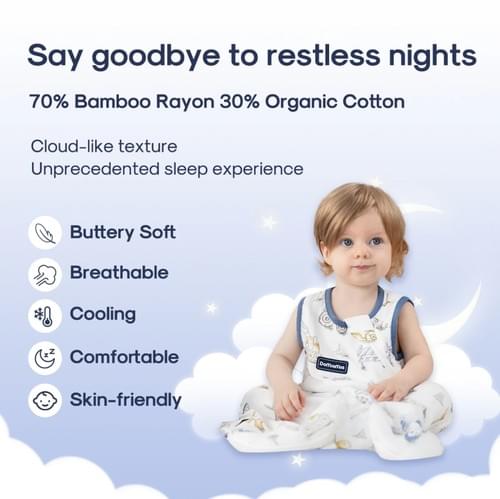 本睡袋仅适用于有成人看护下的睡眠,并应在婴儿床或婴儿摇篮内使用。请务必让宝宝仰卧入睡,避免将产品放置于沙发、成人床等柔软表面使用。使用前请定期检查产品是否有磨损或损坏,若发现部件松脱或破损,请立即停止使用。请勿在无人看护的情况下让宝宝使用此产品。不当使用可能增加窒息或过热的风险。请始终遵循儿科医生推荐的安全睡眠指南。